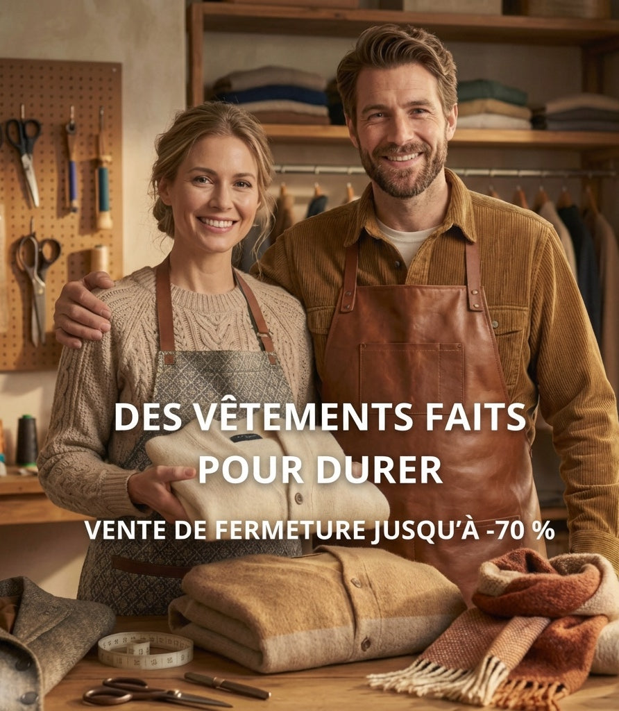 Alors que nous préparons notre fermeture définitive, c'est votre dernière chance de découvrir les vêtements que nous avons sélectionnés avec des années d'expertise.Une fois épuisés, ils ne reviendront plus.